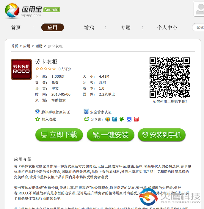腾讯应用宝下载地址:http://android.myapp.com/android/appdetail.jsp?appid=897200&actiondetail=0&pageNo=1&clickpos=1&softname=%E5%8A%B3%E5%8D%A1&transactionid=1374113298520947&lmid=1022