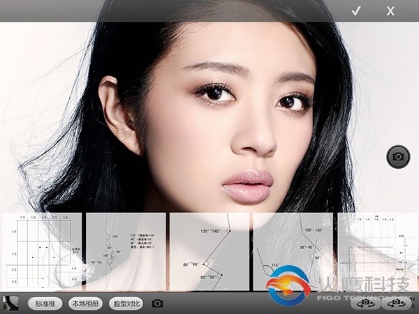 美容整形类app,根据脸部标准的尺寸,对人脸各个部位的比例进行对比,给美容修正提供数据参考。