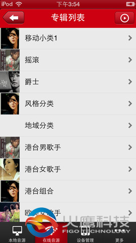 无线播放方面,应用可以将您浏览到的音乐内容通过WIFI无缝地推送到高保真无线音箱、家庭高保真音响系统和车载音响系统上播放。