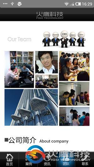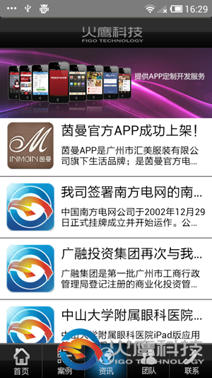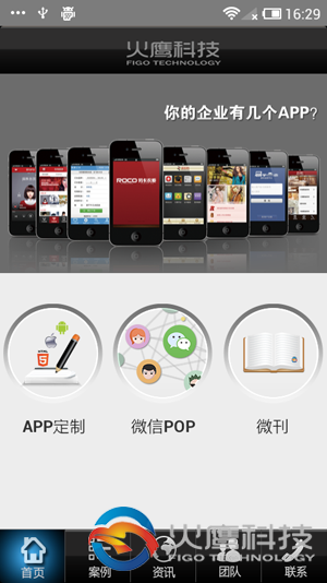 本应用展示火鹰科技的品牌历史、app案例、公司动态、电话咨询等功能。