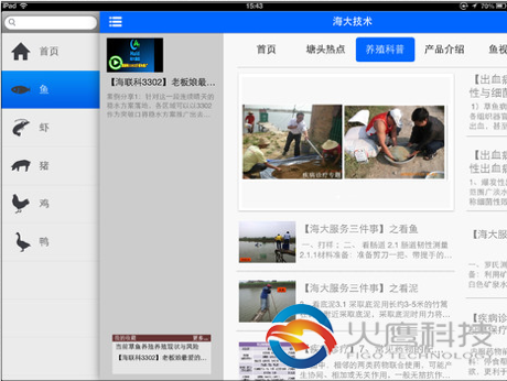海大技术推送平台是上市公司广东海大集团凭借自身在业界的领先研发技术水平,基于移动互联网模式,为广大水产养殖、畜牧养殖等领域用户提供的免费的技术交流、知识共享的平台,提供鱼、虾、猪、鸡、鸭等系列文章、核心技术教学视频的推送。用户可以通过该应用来即时学习、使用海大的最新科研成果。