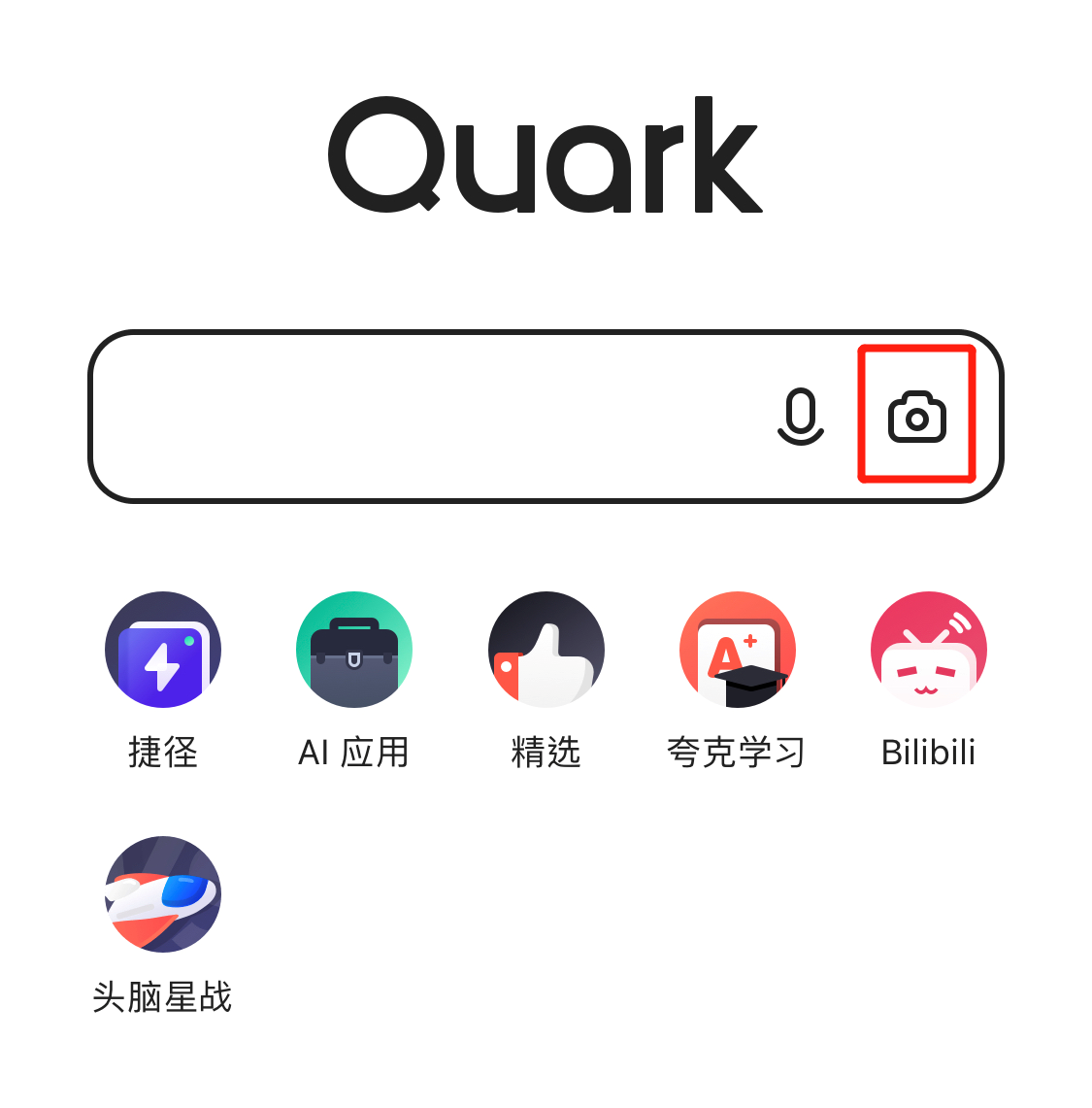 以夸克浏览器举例,实际操作其实和百度App相同,都是在搜索框的右方实现以图搜图。