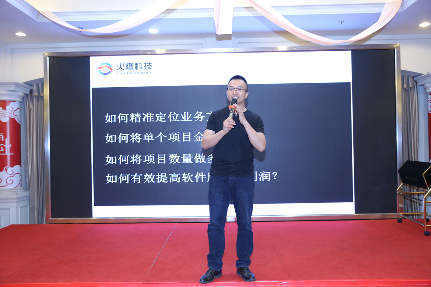 期间,火鹰科技创始人莫国勇先生上台分享了IT创业者的感受,作为成立了十四年的软件开发公司,火鹰科技一直勤勤恳恳专注于移动端应用的定制开发,并获得了业界好评,作为有梦想的企业,莫总也一直有个困惑和思考:“软件外包公司如何做大?”这个也是大大小小IT企业共同面临的问题,莫总认为软件开发企业长期以来最大的痛点就是首次“定制”,因为难赚钱,周期长,易流产,IT企业渴望达到的境界则是二次“复制”,因为成本低,工期短,易交付。在分享探讨中,在座的各位IT大佬们感同身受,并认同认为,IT企业想低风险盈利,“有成品”才是王道!