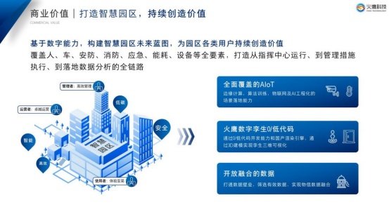 火鹰智慧城市管理系统已经被广泛应用于各种类型的园区,包括商业园区、产业园区等。为客户提供最先进的技术和最优质的服务。火鹰科技利用他们的努力和创新,为客户创造更多的价值。