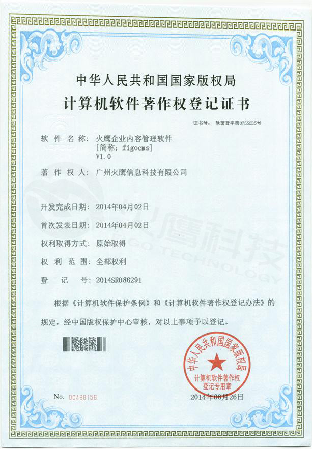 时间:时间: 2014-08-20 10:28:48 阅读: 次分类:公司动态我司自主内容管理系统(FigoCMS)主要为企业定制化开发、APP服务端开发提供支持,国家版权局经过审核确认纳入软件著作权保护(证书号:软著登字第0755535号)。