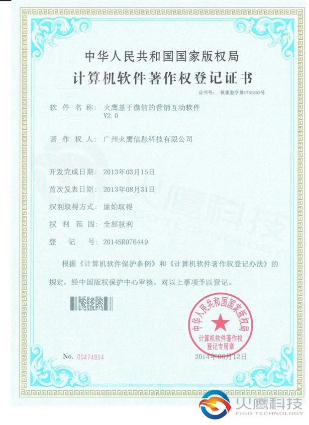 我司基于微信的营销互动软件通过国家版权局审核